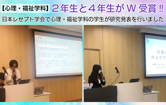 【心理・福祉学科】2年生と4年生がW受賞!日本レセプト学会で心理・福祉学科の学生が研究発表を行いました