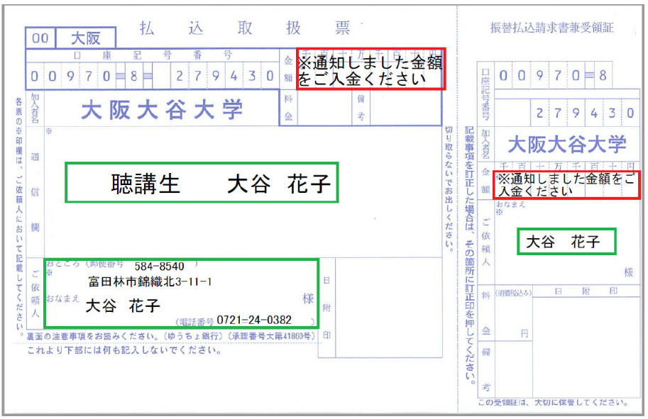 ※振込用紙の通信欄に「聴講生」および「氏名」をご記入ください。