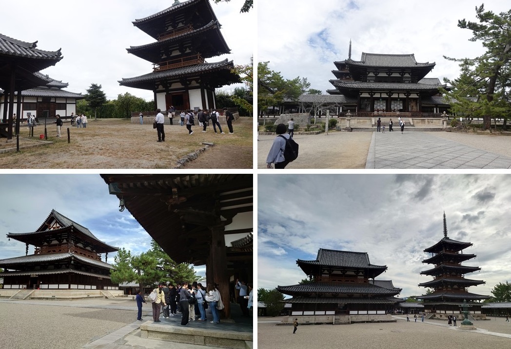 法起寺では主に塔と平安時代の観音像を、法輪寺では特に講堂に集められた飛鳥時代から平安時代の仏像群を、中宮寺では菩薩半跏思惟像を見学し、法隆寺では、初めにお寺の方に法隆寺の概略をご説明いただき、西院伽藍・大宝蔵院・東院伽藍を見学しました。