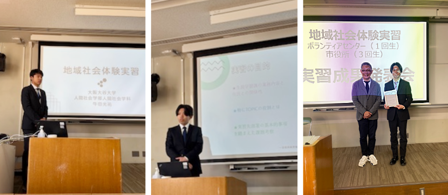 これらの科目を履修した学生は夏休みを中心に現場での実習を体験し、後期には、教員による指導を受けて、ふりかえりを行ない、その結果をまとめた報告書、ならびにパワーポイントでの発表資料を作成します。